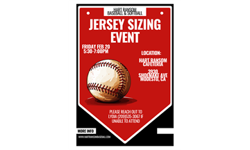 We will be holding a jersey sizing event for the upcoming season and hope you can attend.